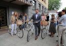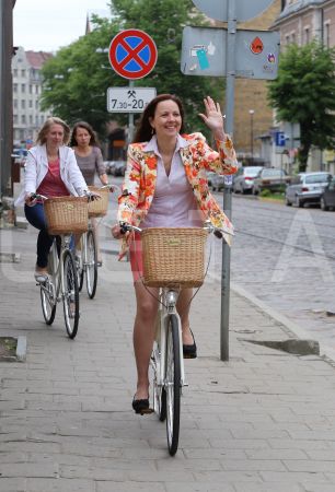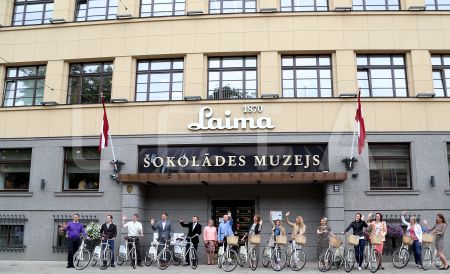 Saldumu fabrikas "Laima" darbinieki ar Latvijas velosipēdu uzņēmuma ...