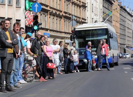 Pie Eiropas Savienības mājas notiek pasākums, kura laikā interesenti ...