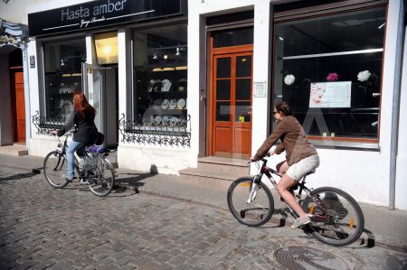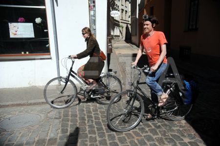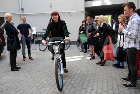 E-velosipēds pasākumā pie Eiropas Savienības mājas, kura laikā ...