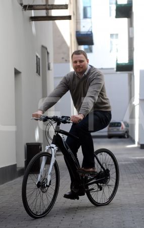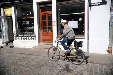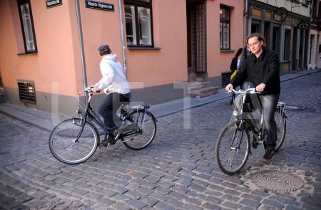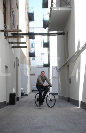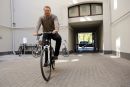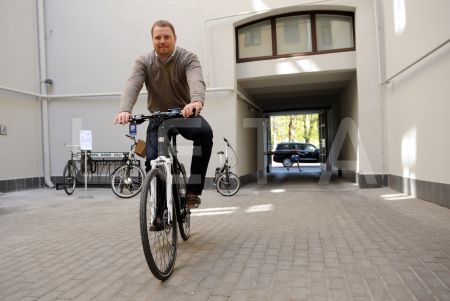 Helmuts Ozols izmēģina e-velosipēdu pasākumā Eiropas Savienības mājas ...