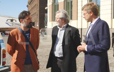 Rīgas domes priekšsēdētājs Nils Ušakovs (no labās), autoekspedīcijas ...