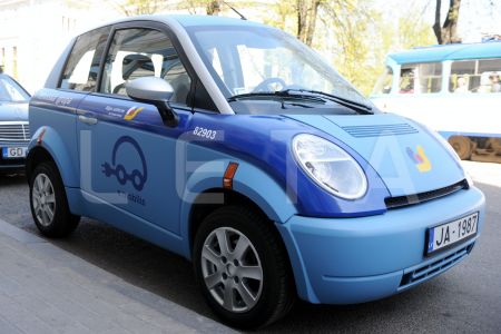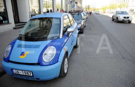 Elektromobilis pasākumā pie Eiropas Savienības mājas, kura laikā ...