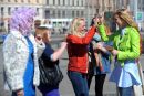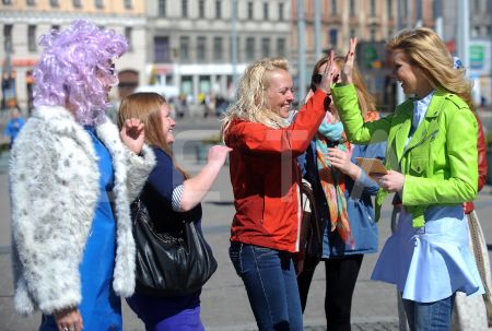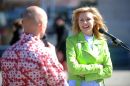 Aktrise Agnese Zeltiņa uzrunā klātesošos 26.aprīlī paredzētās "Lielās ...