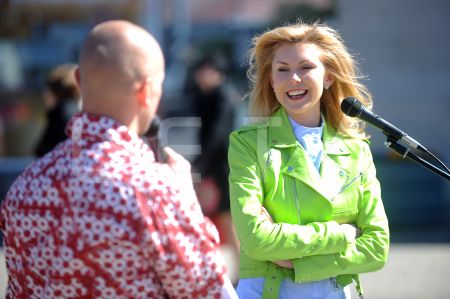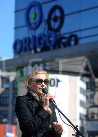 Dziedātāja Olga Rajecka uzrunā klātesošos 26.aprīlī paredzētās ...