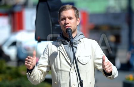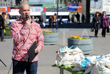 Aktieris Lauris Dzelzītis uzrunā klātesošos 26.aprīlī paredzētās ...