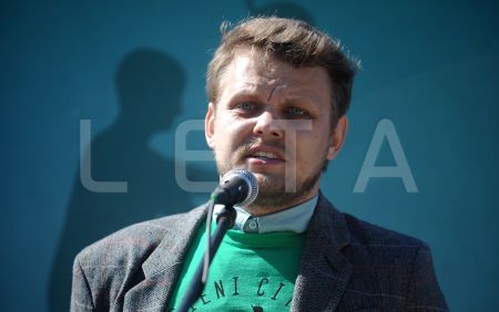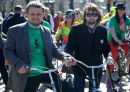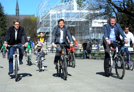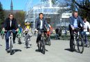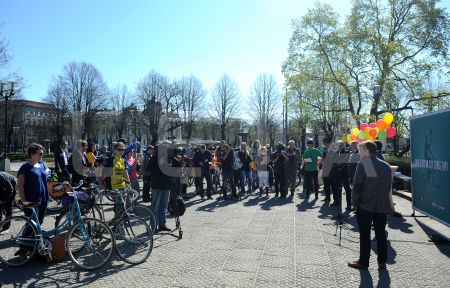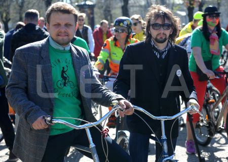 Rīgas velo nedēļas pārstāvis Toms Ērenpreiss (no kreisās) piedalās ...