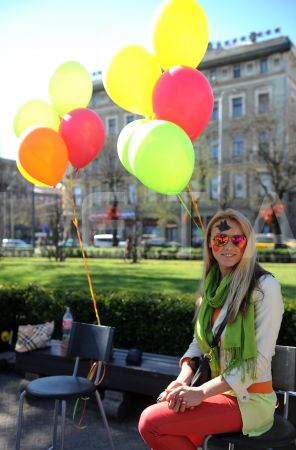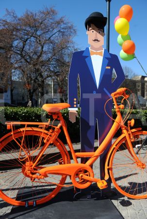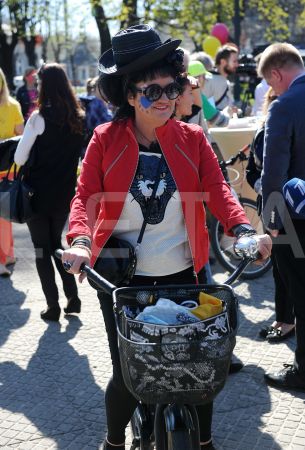 Māksliniece Elita Patmalniece piedalās velo parādē pirms ceļu ...