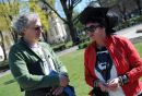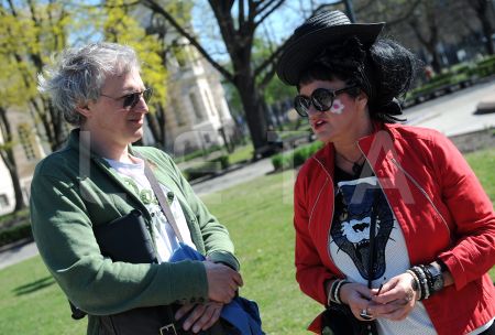 Satiksmes drošības eksperts Pauls Timrots (no kreisās) un māksliniece ...