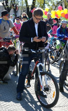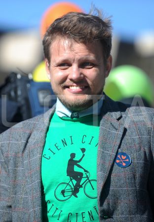 Rīgas velo nedēļas pārstāvis Toms Ērenpreiss piedalās ceļu satiksmes ...