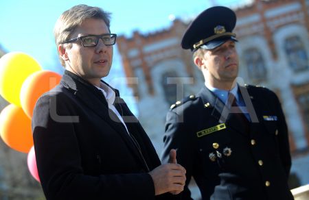 Rīgas domes priekšsēdētājs Nils Ušakovs piedalās ceļu satiksmes ...