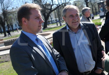 Satiksmes ministrs Anrijs Matīss (no labās), Ceļu satiksmes un ...