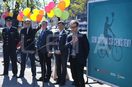 Esplanādē notiek ceļu satiksmes drošības kampaņas "Cieņa darbojas!" ...
