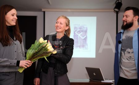 Pastmarkas dizaina TE! zīmes autore Lāsma Lagzdiņa (no kreisās), ...