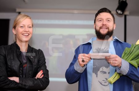 Raidījuma "TE!" vadītāji Marta Selecka un Gustavs Terzens piedalās ...