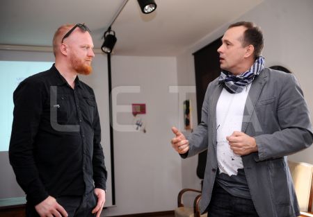 Raidījuma "TE!" režisors Uģis Olte (no kreisās) un producentu ...