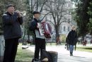 Cilvēki atpūšas saulītē Bastejkalnā.