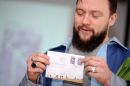 Raidījuma "TE!" vadītājs Gustavs Terzens piedalās pastmarkas, kas ...