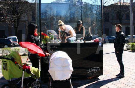 Māmiņu apvienības "Babyroom" pārstāve Laura Bluša un Rīgas Zooloģiskā ...