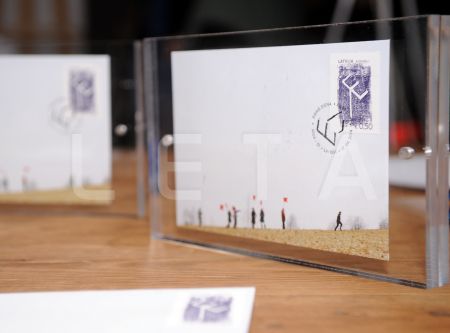 Raidījuma "TE!" vadītāja Dace Grimza piedalās pastmarkas, kas veltīta ...