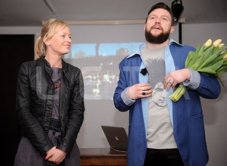 Raidījuma "TE!" vadītāji Marta Selecka un Gustavs Terzens piedalās ...