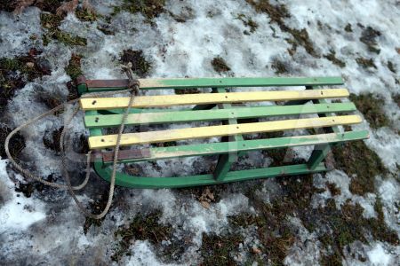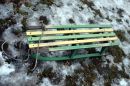Vīrietis uz kamaniņu kalna "Riekstukalna" trasē Baldonē.
