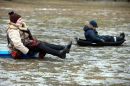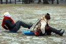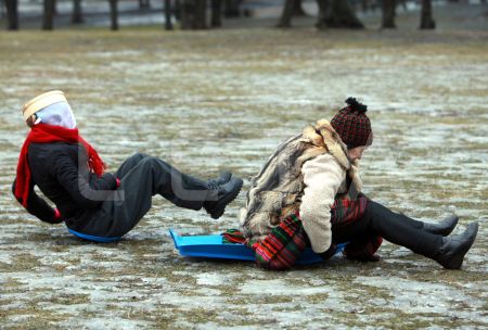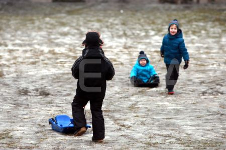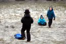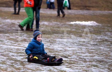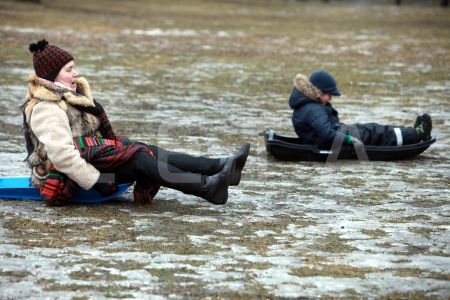 Cilvēki uz kamaniņu kalna "Riekstukalna" trasē Baldonē.