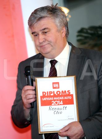 "Renault Clio" pārstāvis, saņemot balvu "Latvijas mazais auto", ...