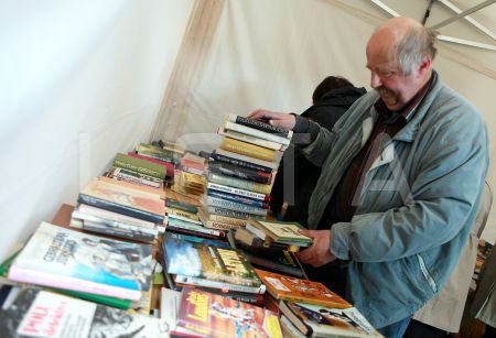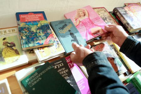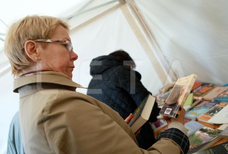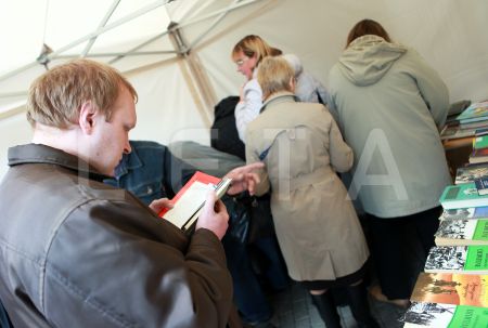 Grāmatu maiņas punkts Miķeļdienas gadatirgū Doma laukumā.