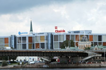 Skats uz banku "Citadele" un Vanšu tiltu.