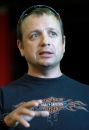 Latvijas motokluba "Namejs" biedrs Kaspars Dāvids piedalās preses ...