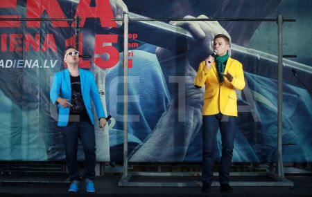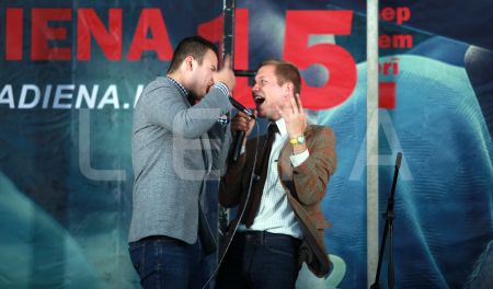 Vislatvijas spēka dienas dalībnieki Artūrs Šekins (no kreisās) un ...