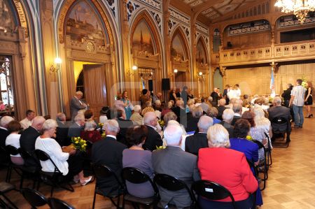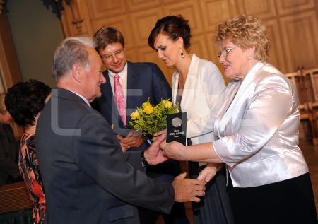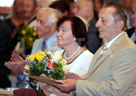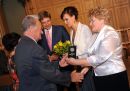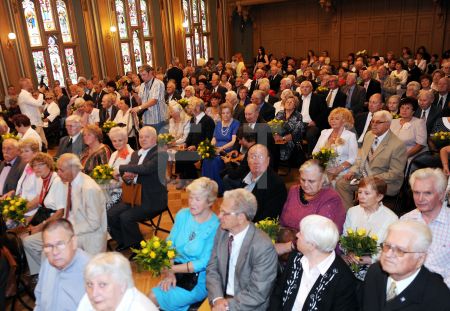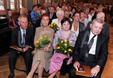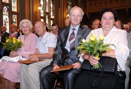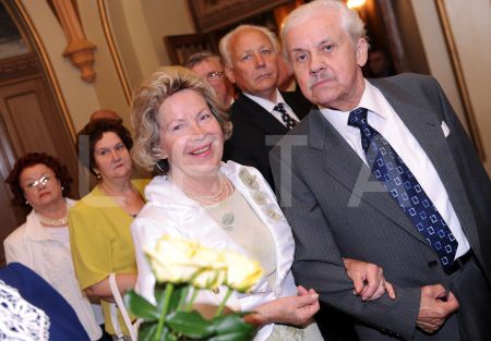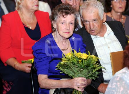 Dzimtsarakstu nodaļas vadītāja Viktorija Paņko uzrunā Zelta kāzu ...