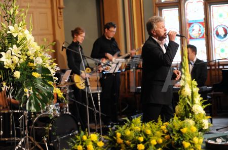 Dziedātājs Uģis Roze sniedz muzikālu priekšnesumu svētku sarīkojumā, ...