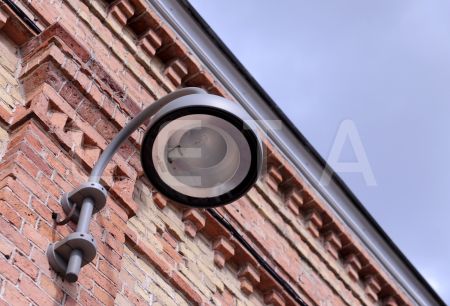 Cilvēki pie Aizsardzības ministrijas ēkas Krišjāņa Valdemāra ielā.