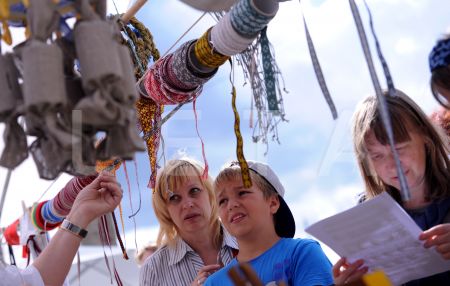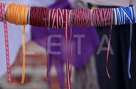 Latu turētāji "Latvija" amatnieku tirdziņā Spīķeru laukumā.