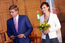 Rīgas mērs Nils Ušakovs un Rīgas domes priekšsēdētāja kundze Jeļena ...