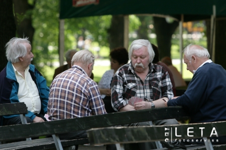 Pensioners playing chess at Vermanes Park in central Riga.