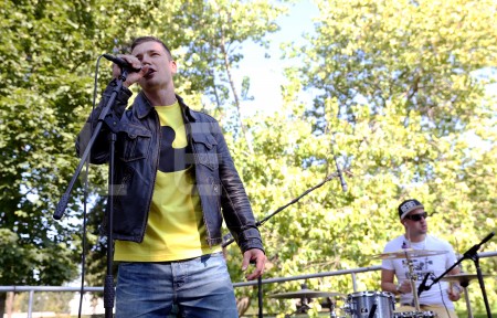 Grupa "Gain fast" uzstājas Rīgas kanālmalā pie Latvijas Nacionālās ...