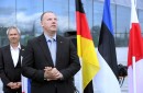 Aizsardzības ministrs Raimonds Bergmanis (centrā) piedalās Brīvības ...