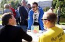 Pie Raiņa pieminekļa Esplanādē norisinās pikets, lai atbalstītu bēgļu ...