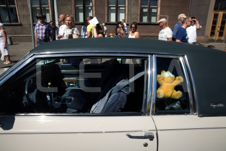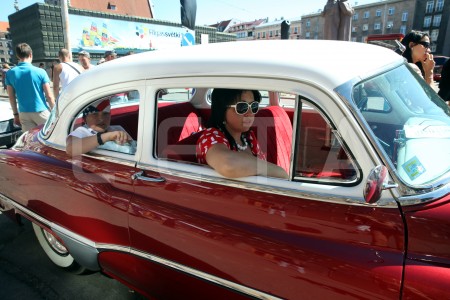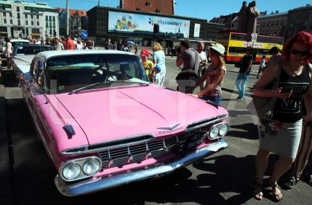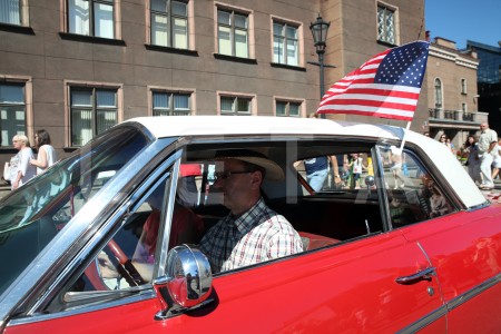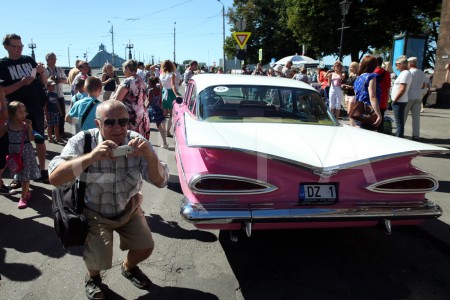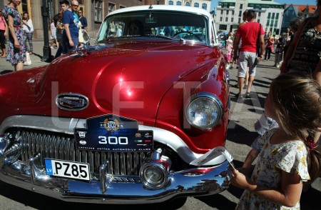 Amerikāņu auto parāde Rīgas svētku laikā.