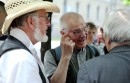 Cilvēki vēro Eiropraida gājienu no Vērmanes dārza caur Rīgas ielām.