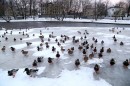 Pīles uz Māras dīķa ledus.