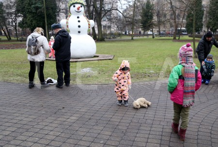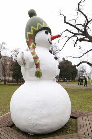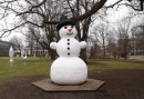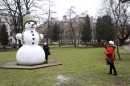 Cilvēki pie sniegavīra Vērmanes dārzā.