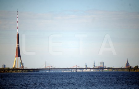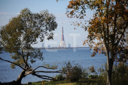 Skats uz Dienvidu tiltu un Latvijas televīzijas torni no Ķengaraga ...