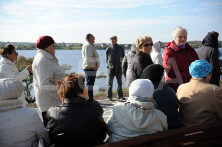 Cilvēki ieradušies uz Ķengaraga promenādes pagarinājuma - gājēju un ...