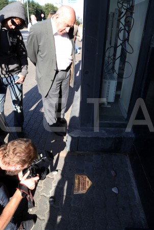 Piemiņas zīmes atklāšana pie ēkas Brīvības bulvārī 32, kur laika ...