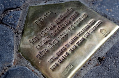 Piemiņas zīme pie ēkas Brīvības bulvārī 32, kur laika posmā no 1941. ...