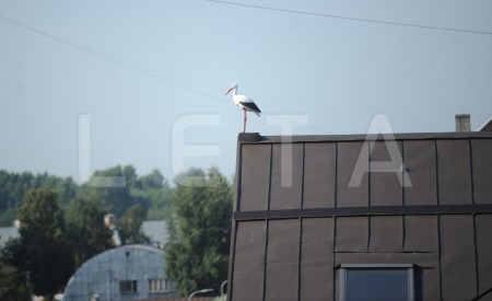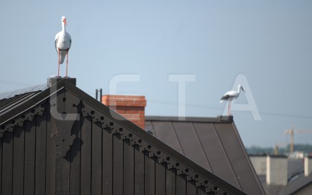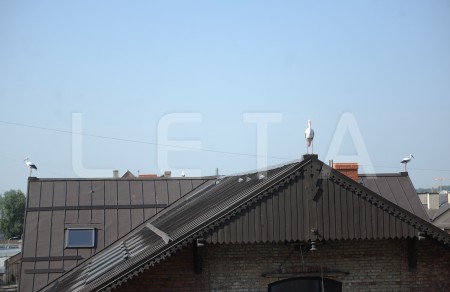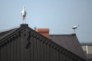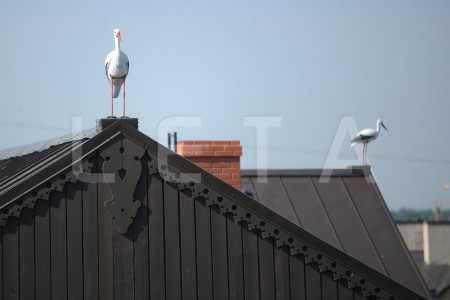 Stārķu figūras uz ēku jumtiem Rīgas Centrāltirgus teritorijā.