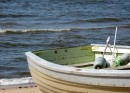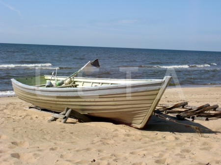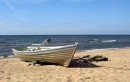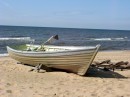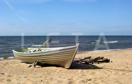 Zvejnieku laiva jūras krastā pie Kursīšiem.